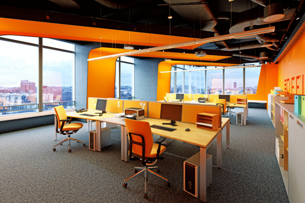 Smart and functional office interiors with premium finishes, designed to boost productivity while maintaining aesthetics.